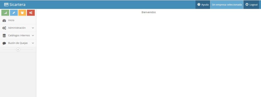 En caso de presionar el botón Sign In sin haber seleccionado previamente alguna empresa no se mostrarán los menús de Catálogos Generales, Fideicomisos, Créditos, Reg. Operaciones, Seguimiento, Reportes y Reportes CNBV, ya que estos dependen totalmente de que se seleccione una empresa para poder ser utilizados.