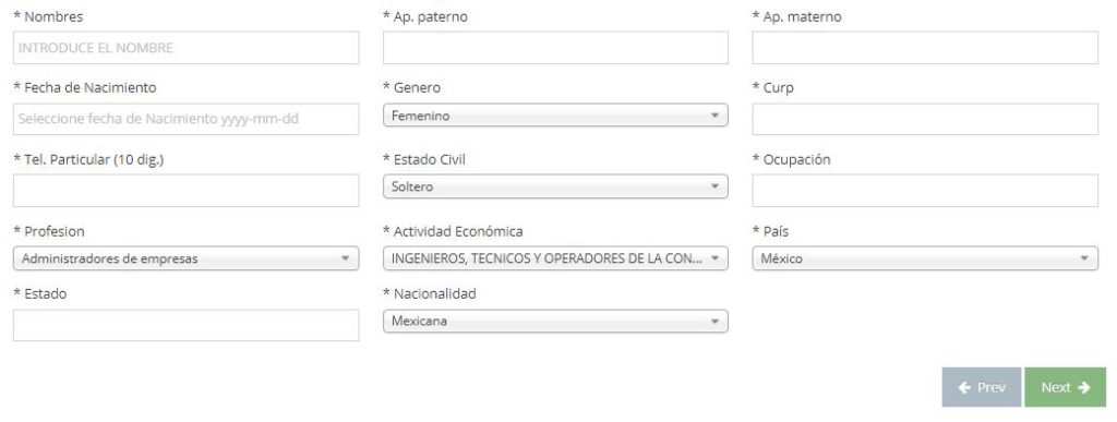 Es necesario presionar el botón crear para que muestre la siguiente pantalla, en el cual solicita los datos que se muestran a continuación.