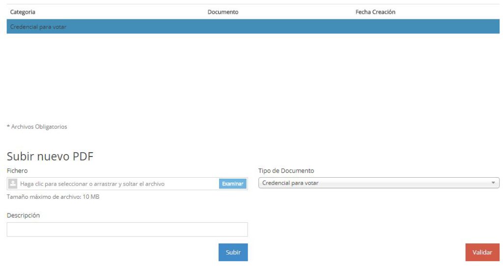 Esta utileria muestra una lista de el o los documentos adjuntos al registro de personas con la finalidad de complementar la información de registro. Esta utilería tiene una sección para subir los archivos y solo se puede adjuntar archivos con extensión PDF.